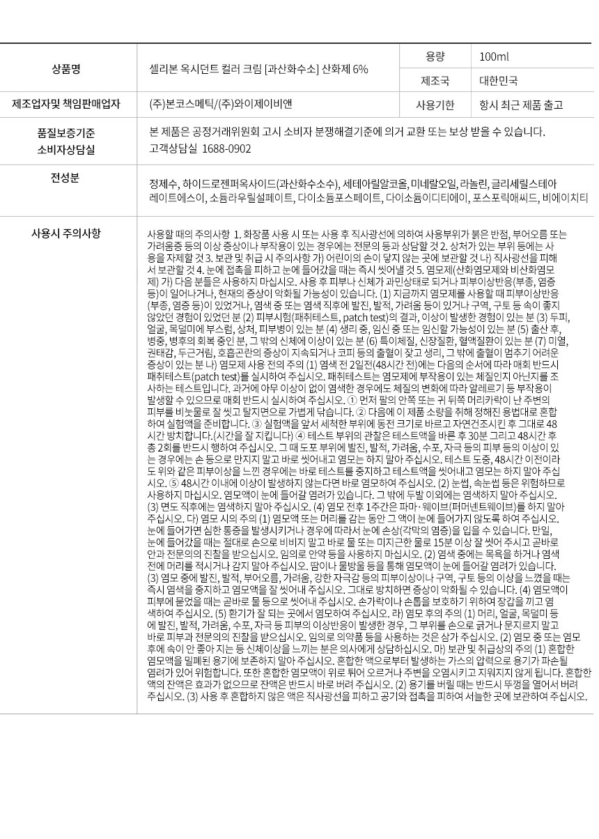 셀리본 옥시던트 컬러 크림 (염색용) 산화제 6% 100ml x 5개