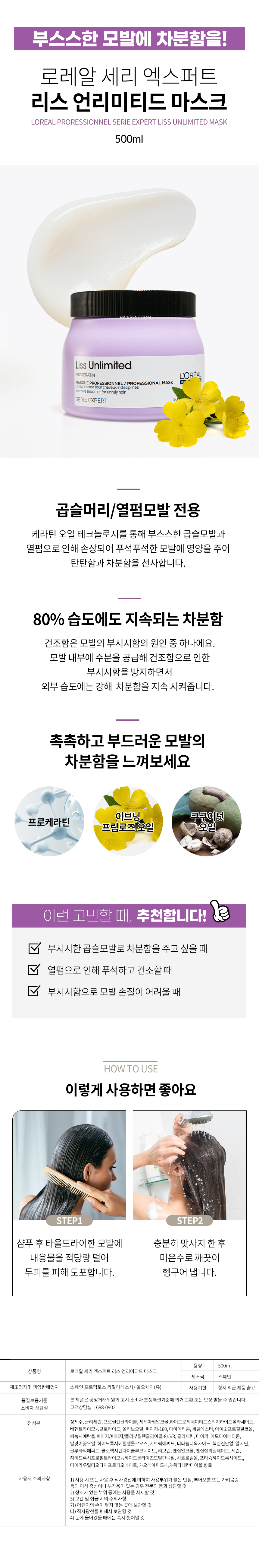 세리 엑스퍼트 리스 언리미티드 마스크 500ml (곱슬/열펌모발용)