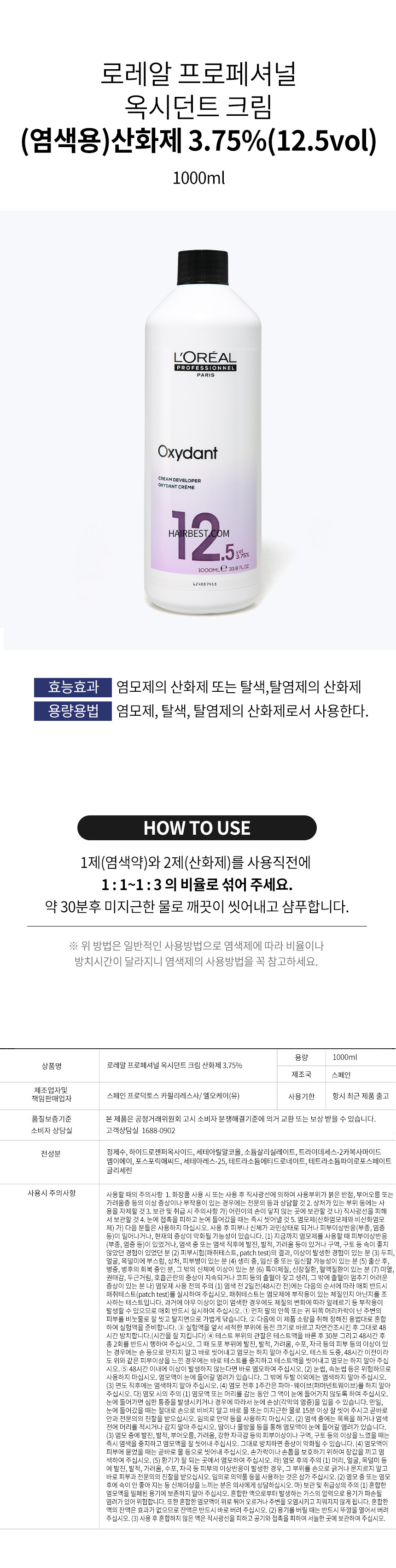 옥시던트 크림 3.75% 산화제 1000ml